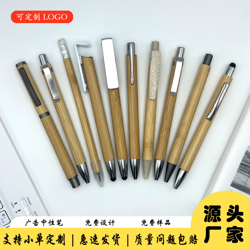 広告ペンカスタムロゴ竹木押しボールペン中性ペン販促ギフトペン彫刻竹ペン印刷可能