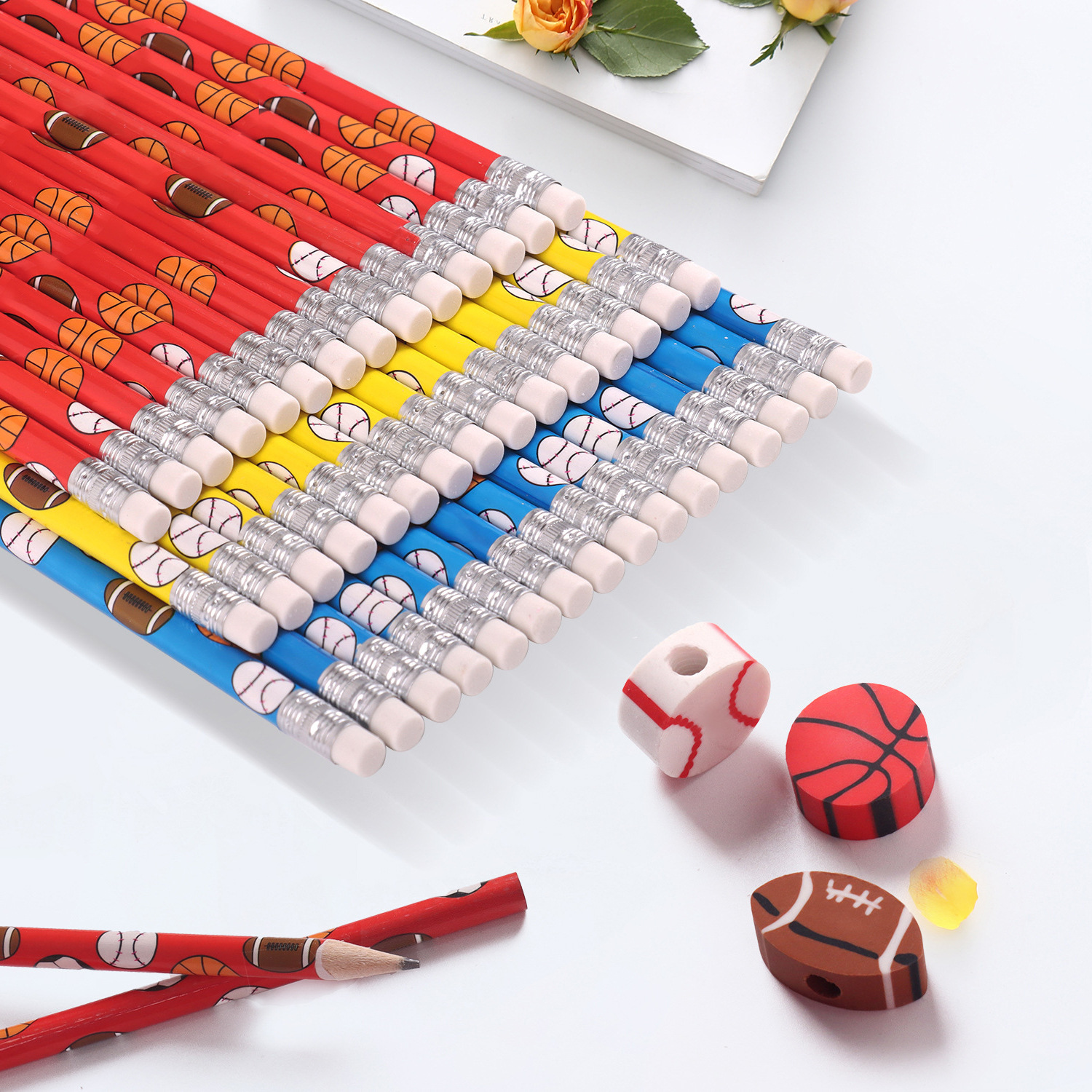 クロスボーダーシンプルな鉛筆デザインバスケットボールサッカーテーマ消しゴム付き鉛筆学生絵画用HB鉛筆