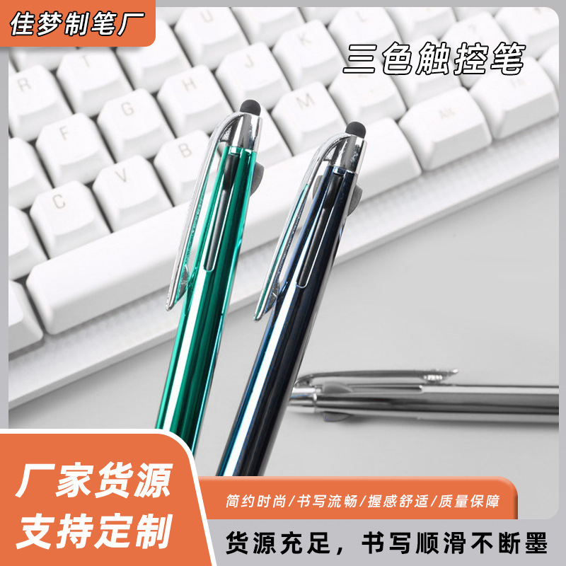 三色ボールペン押しカラーペン卸売多色uvタッチメッキペンプロモーション広告ペン印刷ロゴ