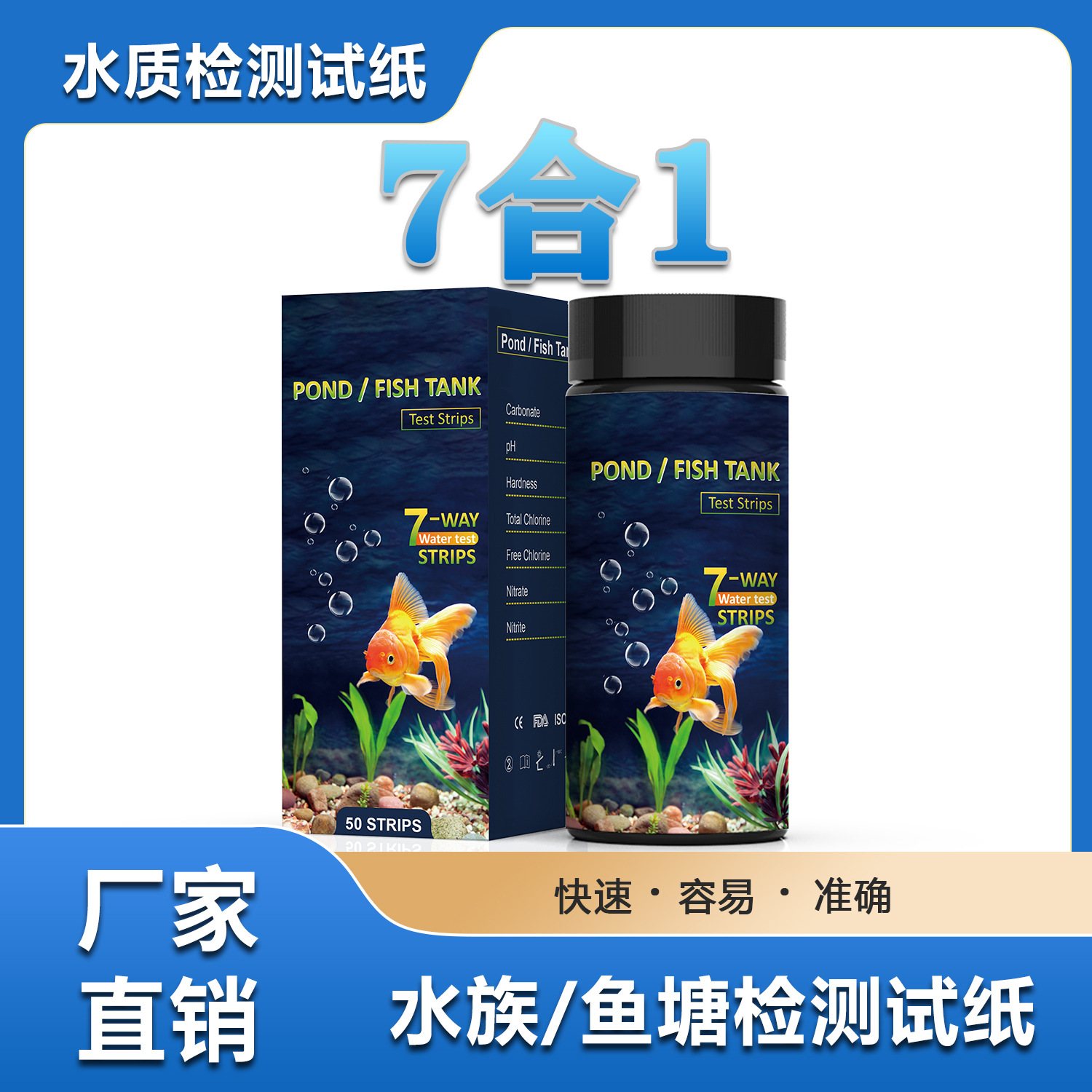 7合1水質検査試験紙は水族水槽などの養魚水の水質をテストします。