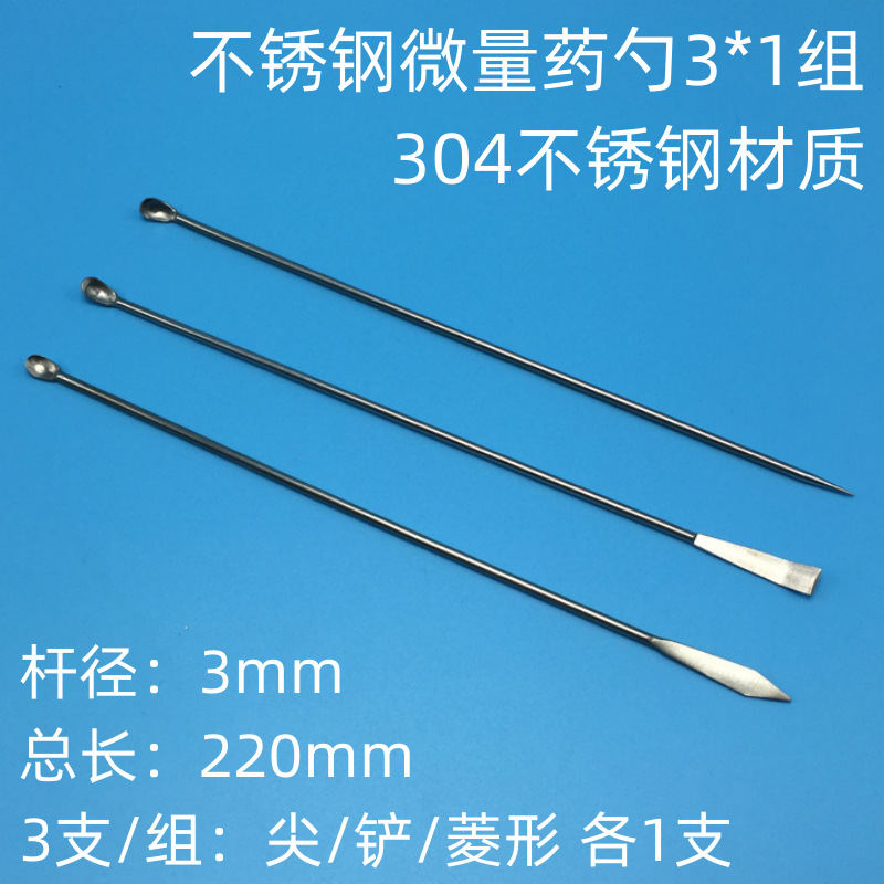 304ステンレス鋼微量薬物スプーン3*1セット、実験室用ステンレス鋼薬物スプーン、薬物スクレーパー、薬物スクープ、サンプリングスプーン、22cm