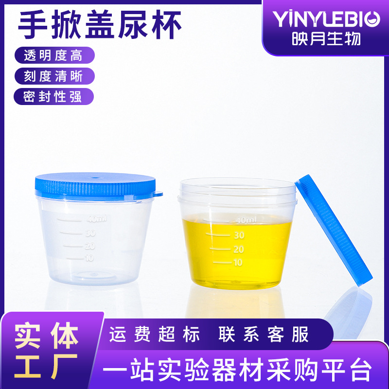 使い捨てプラスチック蓋付き尿カップ手蓋付きスケールサンプリングカップ付き使い捨て尿カップ40ミリリットル