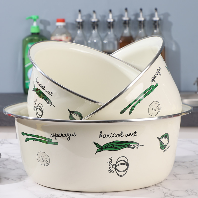 エナメルエナメルの台所の家庭用の鉢と洗面器の卵をたたいて野菜を洗うたらいのエナメルのたらいは野菜のたらいをかき混ぜて卸売りします。