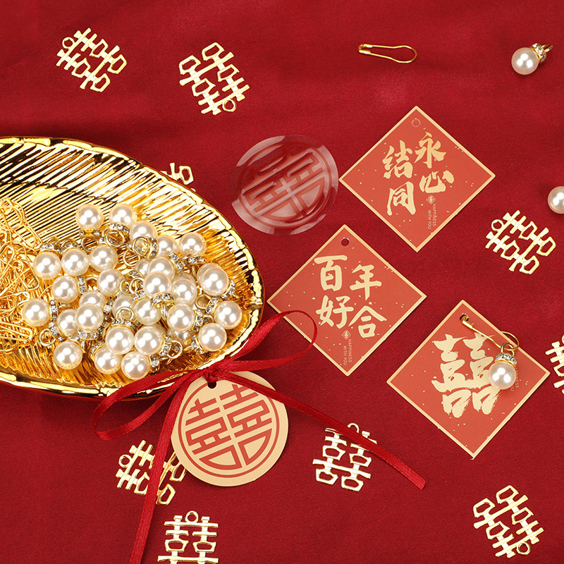 結婚式の中国式の喜糖の箱の真珠の喜字のお土産のペンダントの部品の結婚の砂糖の箱のペンダントは結婚のつり札を飾ります。