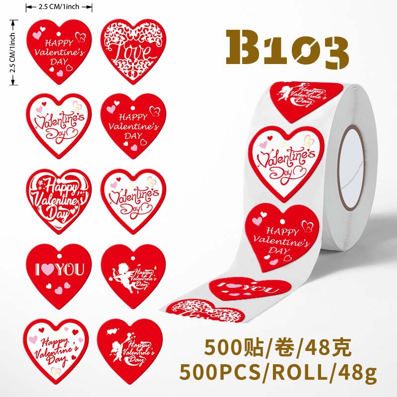 520 バレンタインデー ラブ バースデー サンキューシール ロール ギフト デコレーション ハート型 粘着ラベル ステッカー