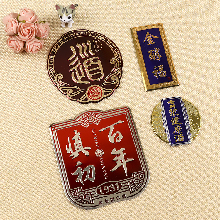 メーカーカスタマイズされた金属ワインラベル、白ワインサイン、曲面アルミニウム製品、ワインサイン、商標、ロゴのカスタマイズ