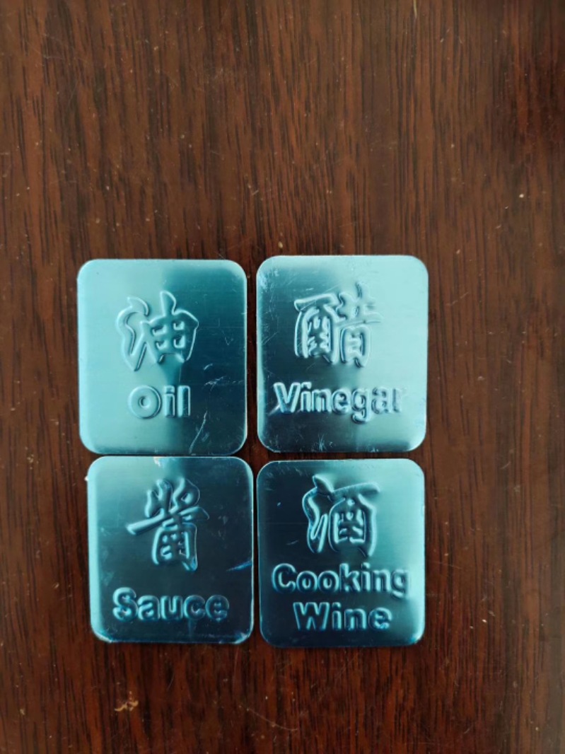 油酢の味噌の酒は台所の調味料の瓶の字を貼ってステンレスを貼ります。