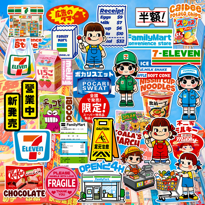 オリジナルかわいいコンビニテーマ日本のアニメ手描きスーパーマーケットスナックショップ防水装飾スーツケースステッカー