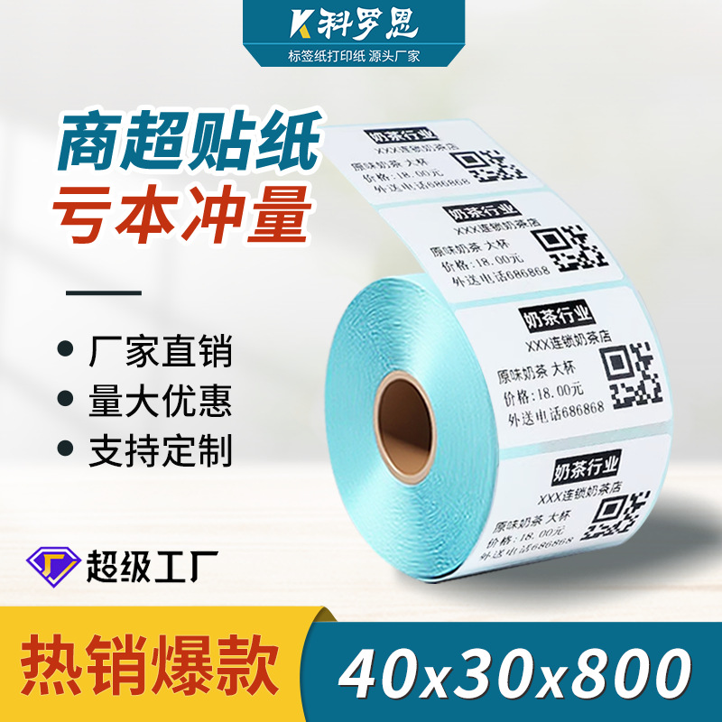 感熱ラベル紙40*30*800枚の三防感熱ラベル紙/バーコード紙/スーパー印字紙