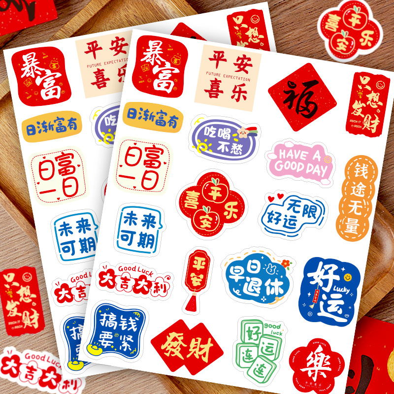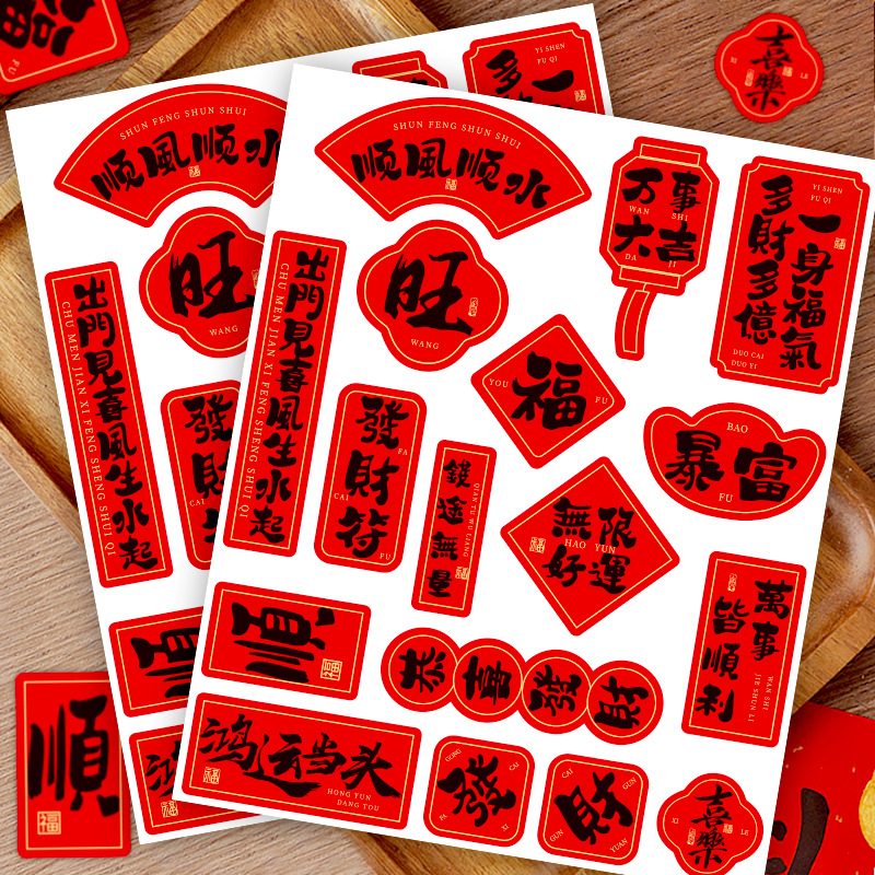 60貼り/新年祝福文字シール平安喜楽国風装飾シール