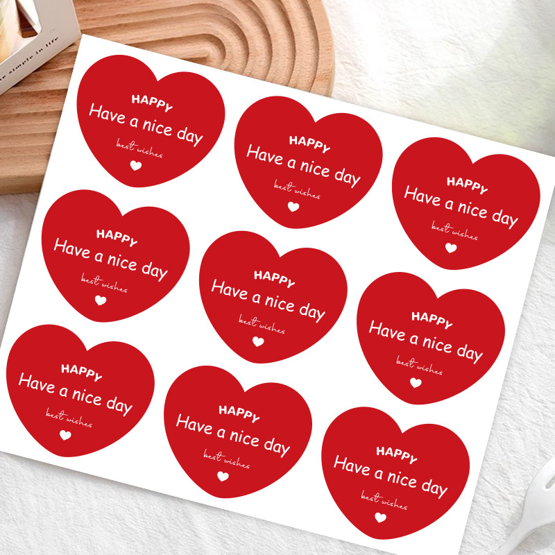 メーカーの現物の赤い愛の焙煎シール英語ラベルのデザートケーキの包装装飾シール