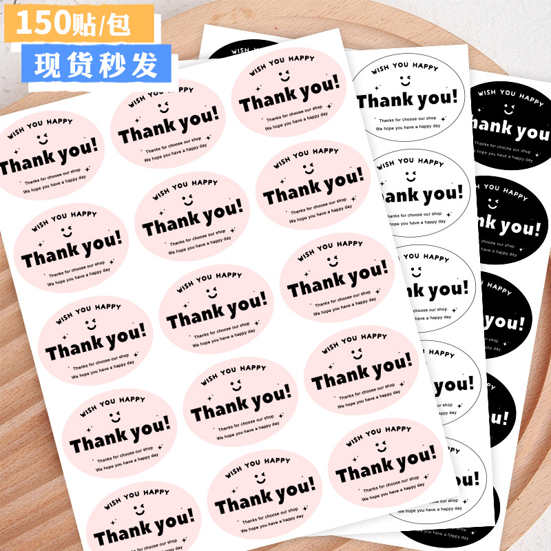 黒楕円形ありがとうステッカーデザートベーキングラベルギフト包装シールステッカー装飾ステッカー