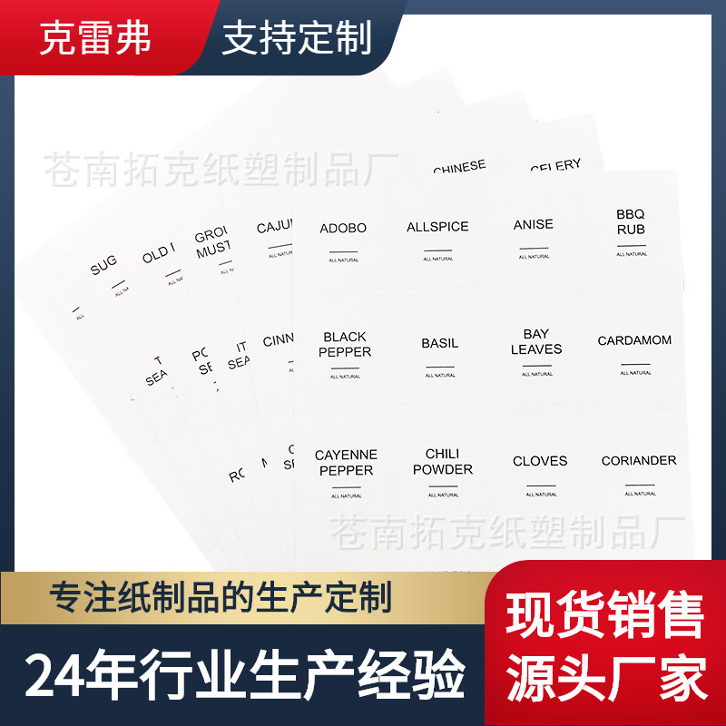 白い味付けラベル調味料ラベル黒板貼りステッカー長方形の白いラベルシール