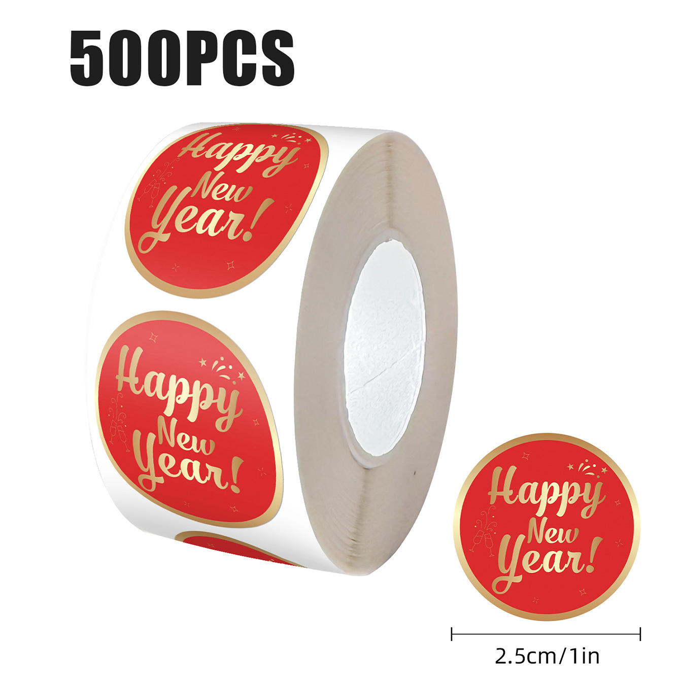 500枚/ロール 2025年新年金箔ロールステッカー 封筒、手帳、梱包箱、iPad用 美しい装飾DIYシール
