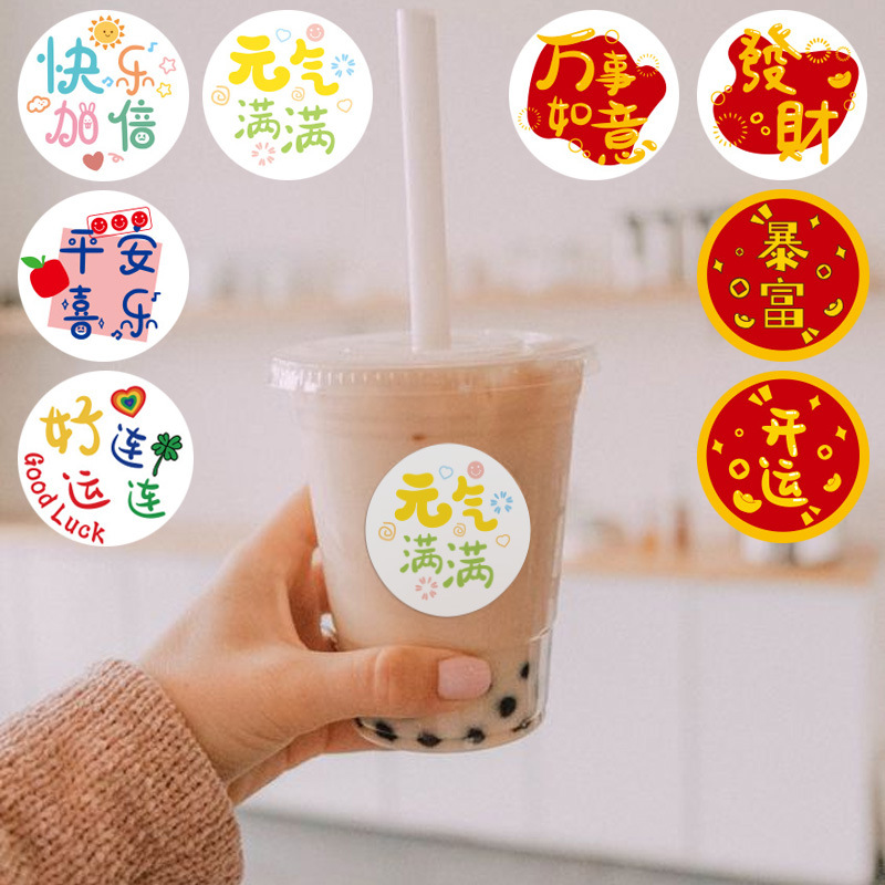 自己粘着ステッカー増粘ラベルカスタマイズされた QR コードロゴ印刷ミルクティー包装シールステッカー商標カスタマイズ