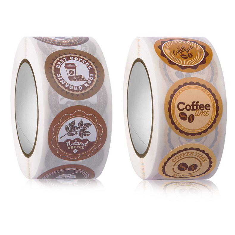 500枚入り コーヒー、ドリンク、アイスクリーム、冷たい飲み物、ジュース用 ロール状粘着ラベル デコレーションシール ロゴステッカー