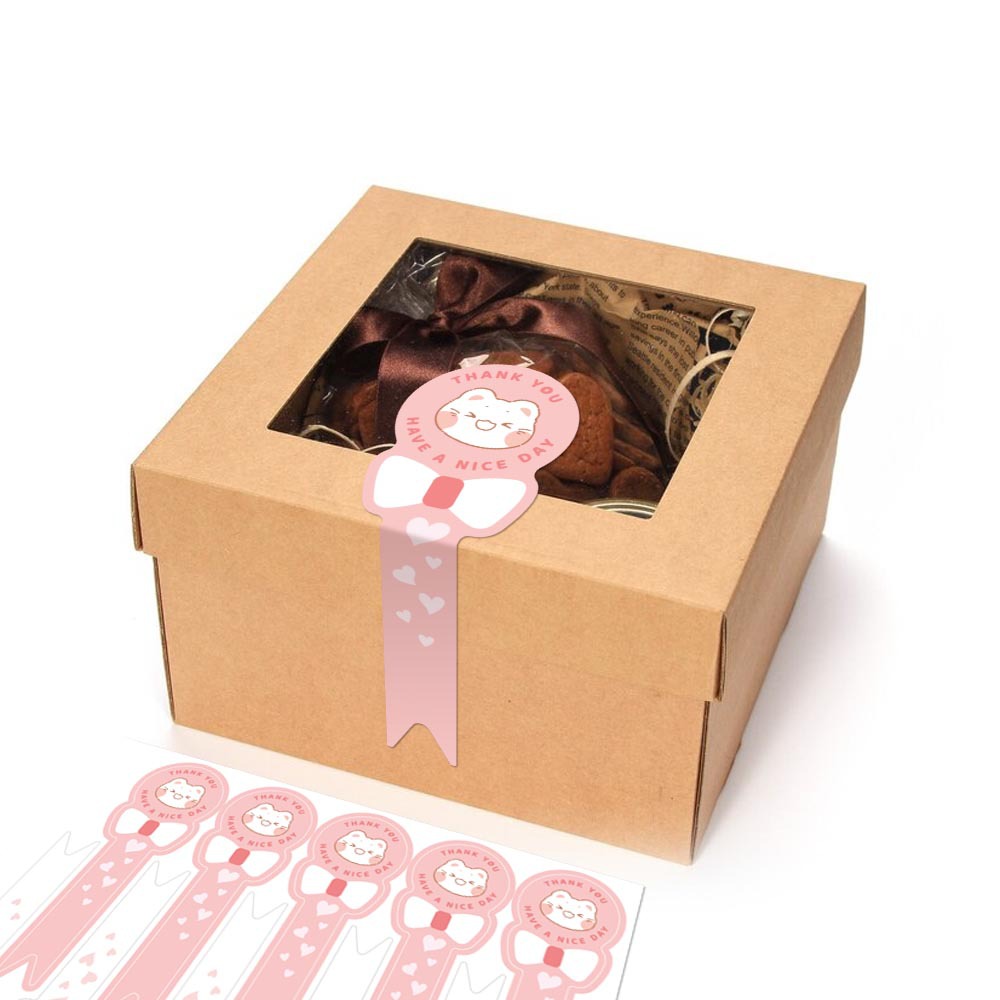 100枚/漫画動物の顔写真を包む長いシール円形のステッカーケーキ箱DIYシール