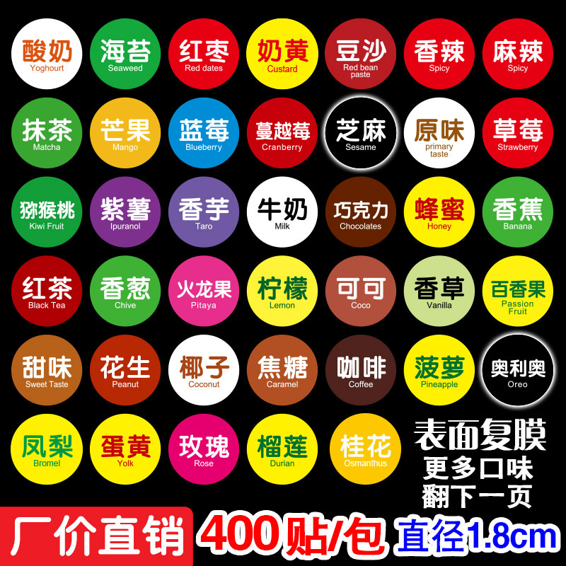 味貼りステッカー原味いちご抹茶食品ラベルオリブルーベリーコーヒーシール400枚