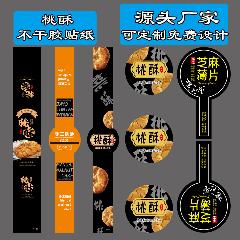 ピーチクリスプステッカー、ごま海苔薄片、粘着ストリップシールステッカー、ベーキング包装箱ラベル、ウエストバンド装飾ステッカー
