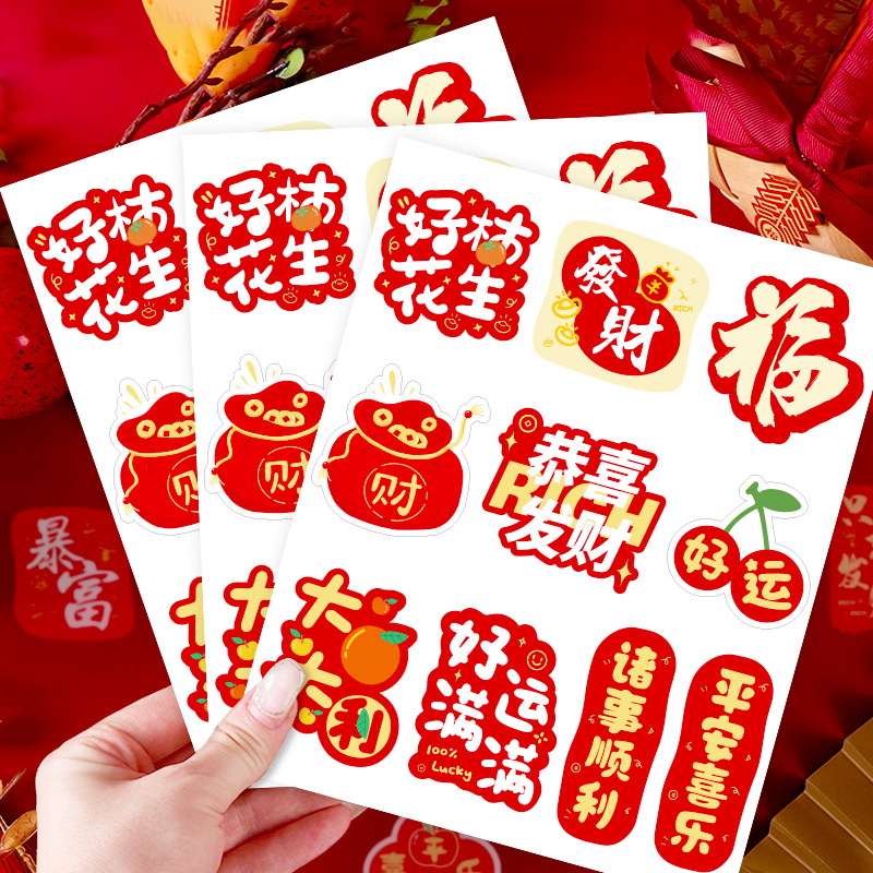 100枚/包装の金持ちになるためのシール旧正月の祝福は絵を貼って祝福のラベルの果物のドライフルーツを貼って礼箱の装飾を貼ります。