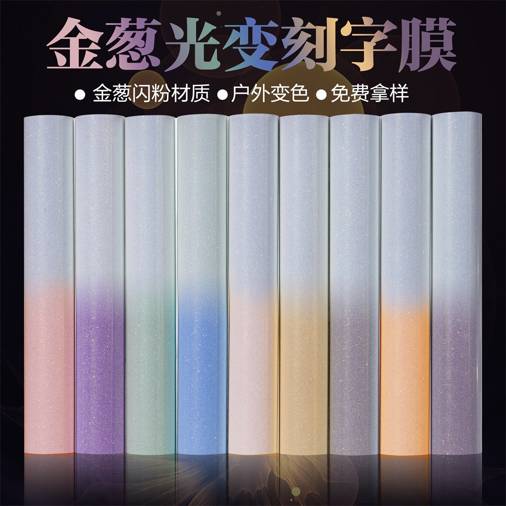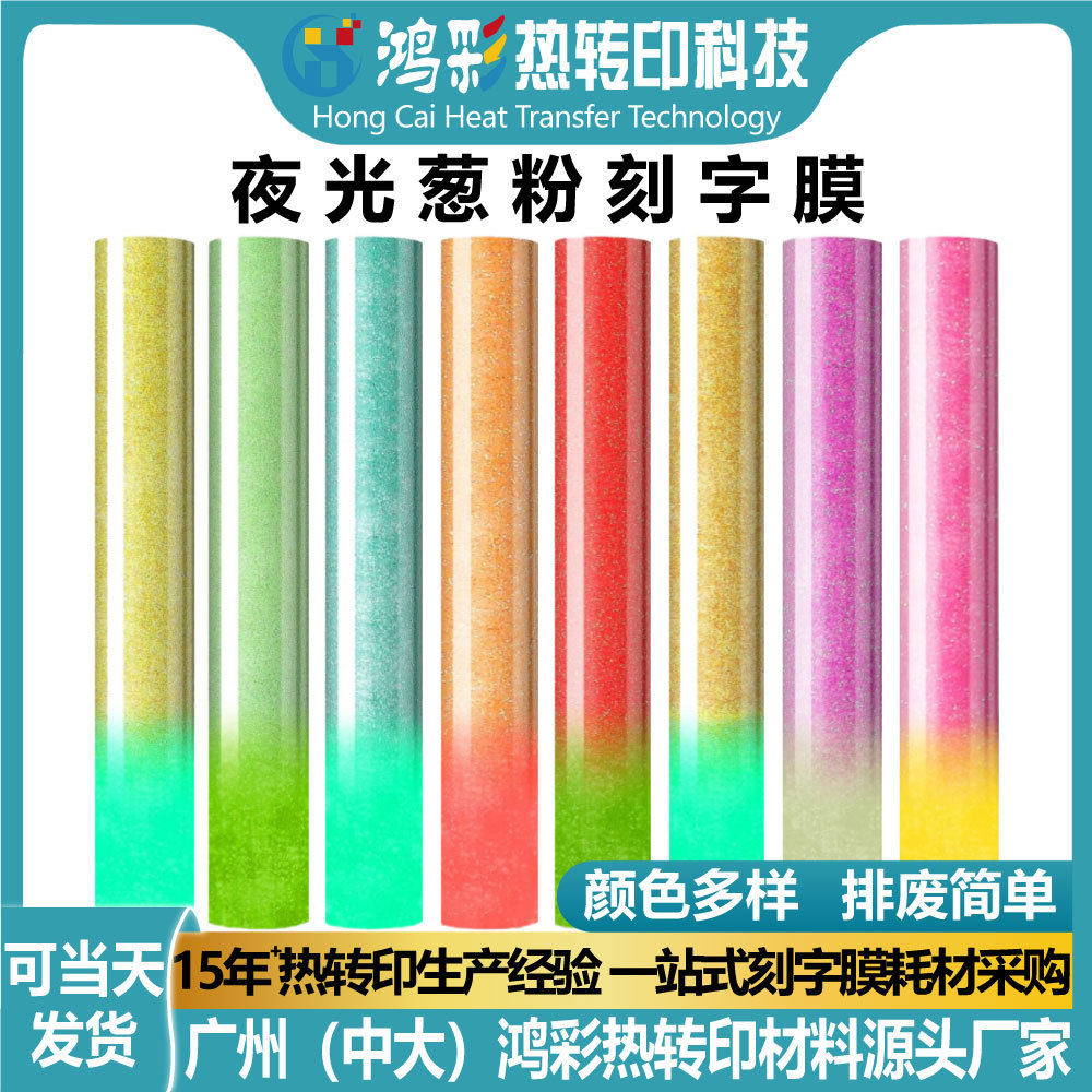 発光オニオンパウダーレタリングフィルムビニールマルチカラー小ロール蛍光グリッター熱転写ホットスタンピングフィルム材料工場卸売