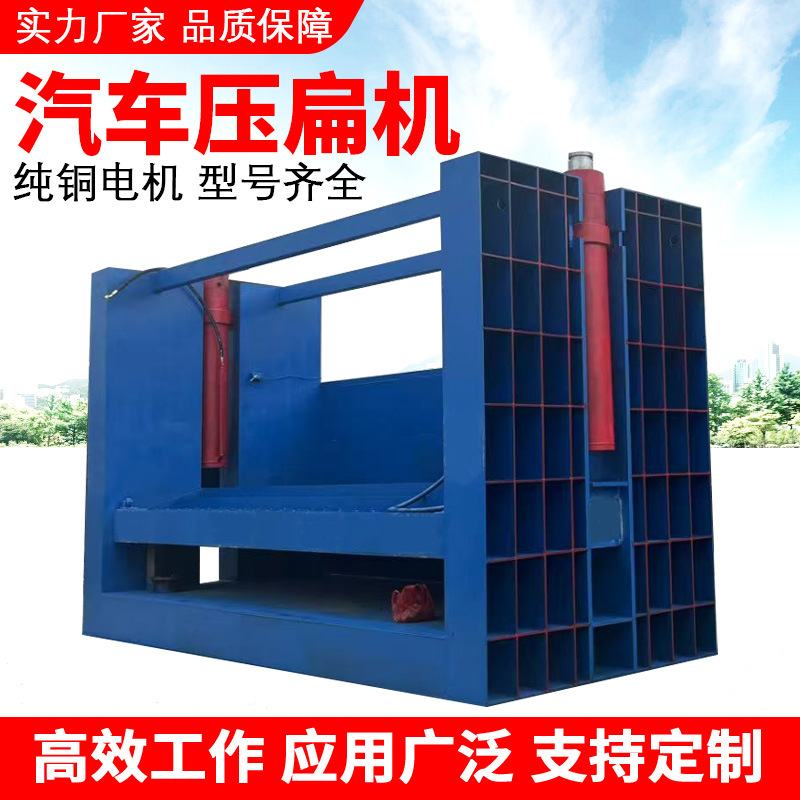 大型报废汽车壳压扁机彩钢瓦边角料液压挤扁机四柱立式汽车压扁机