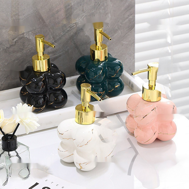 陶磁器の手の液体の瓶の軽い豪華なホテルの会の高い顔の値のシャンプーの入浴剤は瓶を分けて圧力式の家庭を押します