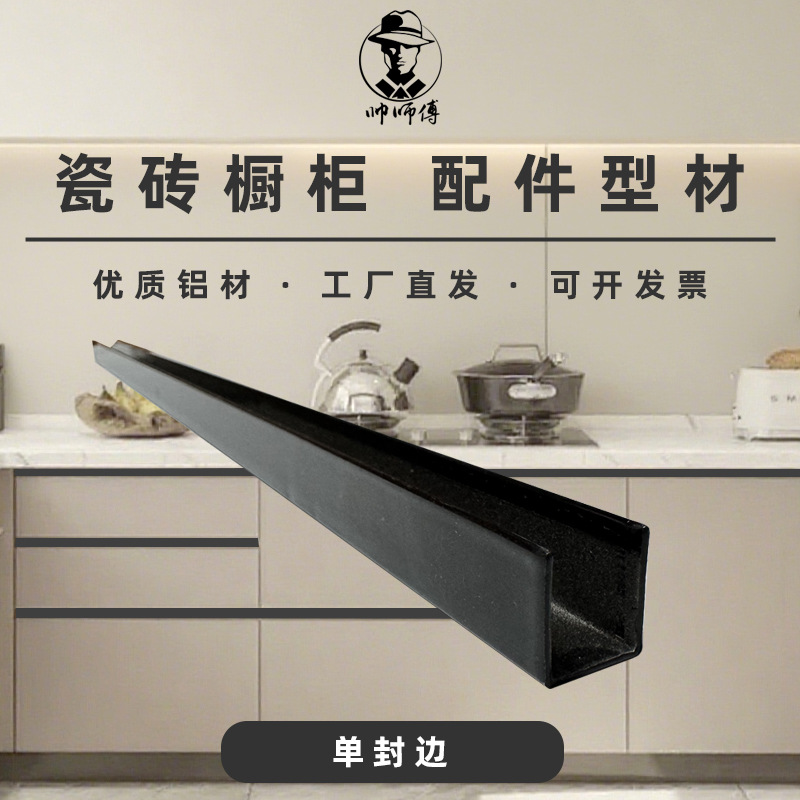 帥師傅 アルミ合金製 ブラック シングルスロット タイルキャビネット用材 シングルエッジトリム 小U字溝 厚アルミ材 特厚