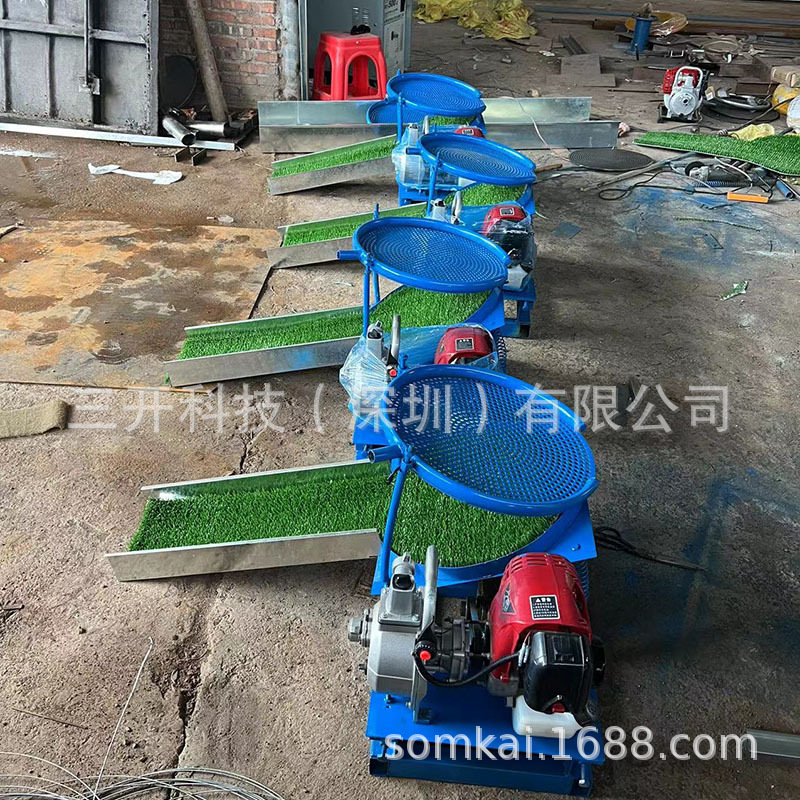 三開鉱山機、小型振動ディスク金選鉱機、金選鉱機、砂金分離振動シュラウド