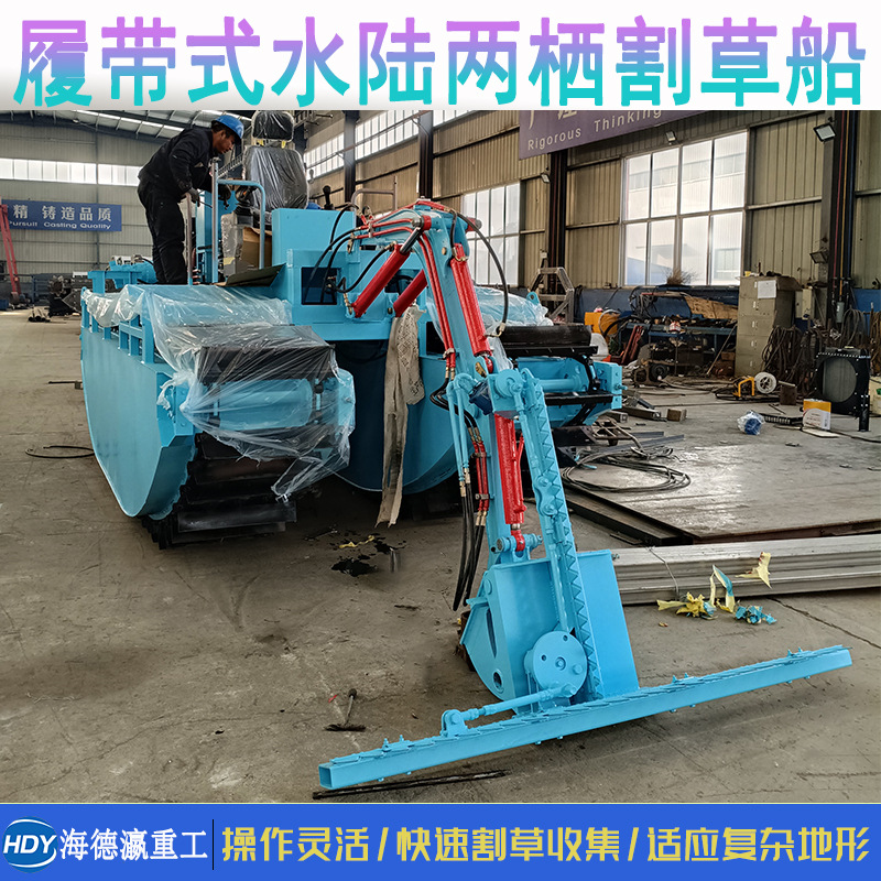 水陸両生類草刈船大型葦刈り取り機全自動水草刈り取り船キャタピラ式水草収集