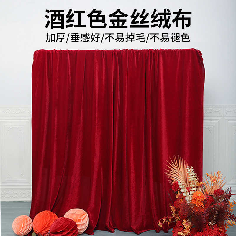 赤いステージカーテン工場直販結婚式肥厚難燃性レッドベルベット背景布クロスボーダー卸売請求書発行可能