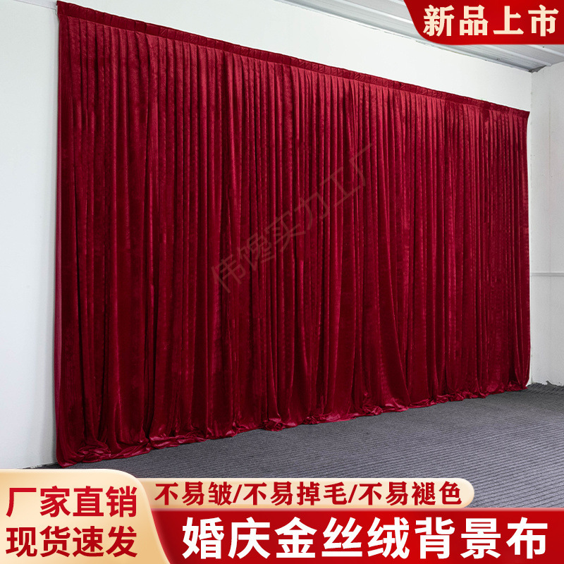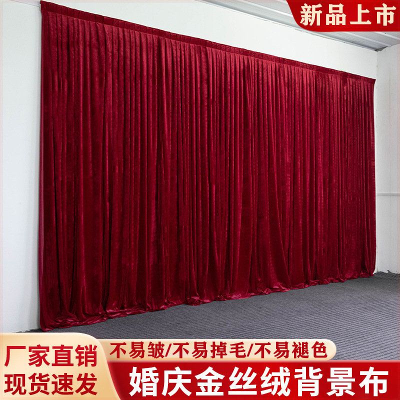 結婚式の背景カーテンゴールドベルベット生地ワインレッド背景布婚約宴会パフォーマンスステージカーテン写真撮影用吊り布