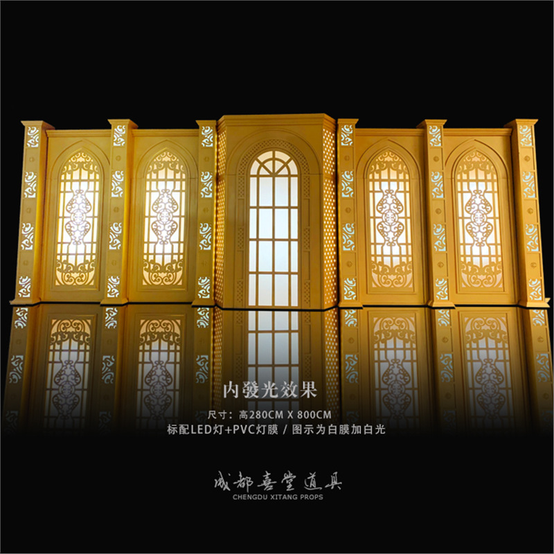 結婚式堂城金色立体発光背景道具大型結婚式舞台創意ヨーロッパ式組み合わせアーチ