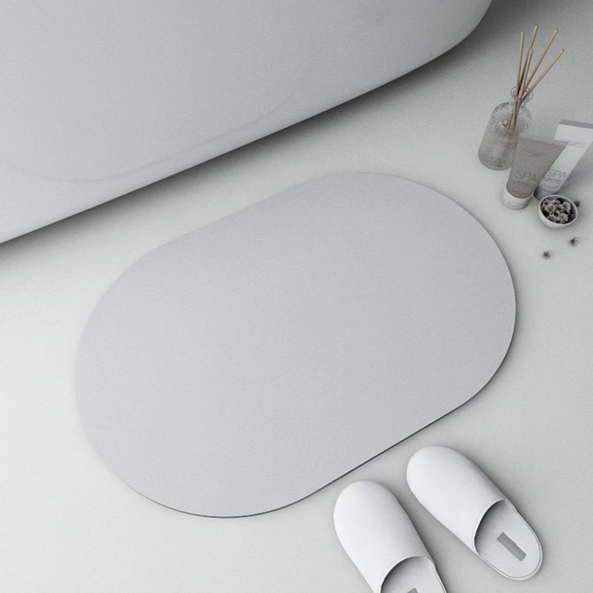 シンプルな無地の楕円形のフロアマット、家庭用バスルーム吸収性カーペット、バスルームトイレ滑り止めフットマット、玄関ドアマット