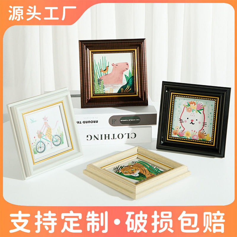 Ins漫画文字正方形フォトフレーム5インチ6インチ7インチ8インチ油絵棒額縁掛け壁クリエイティブレトロ置物台