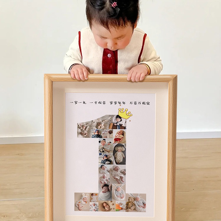 満1歳の手足の印は赤ちゃんの新生児の赤ちゃんの儀式感の記念の写真の額縁を描きます。