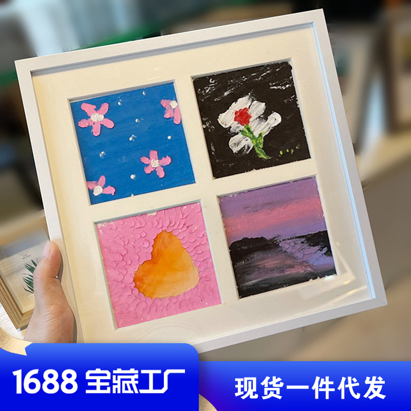 正方形九宮四宮オイルパステルフォトフレーム卸売手作り diy テーブル絵画フレーム壁掛けフレーム