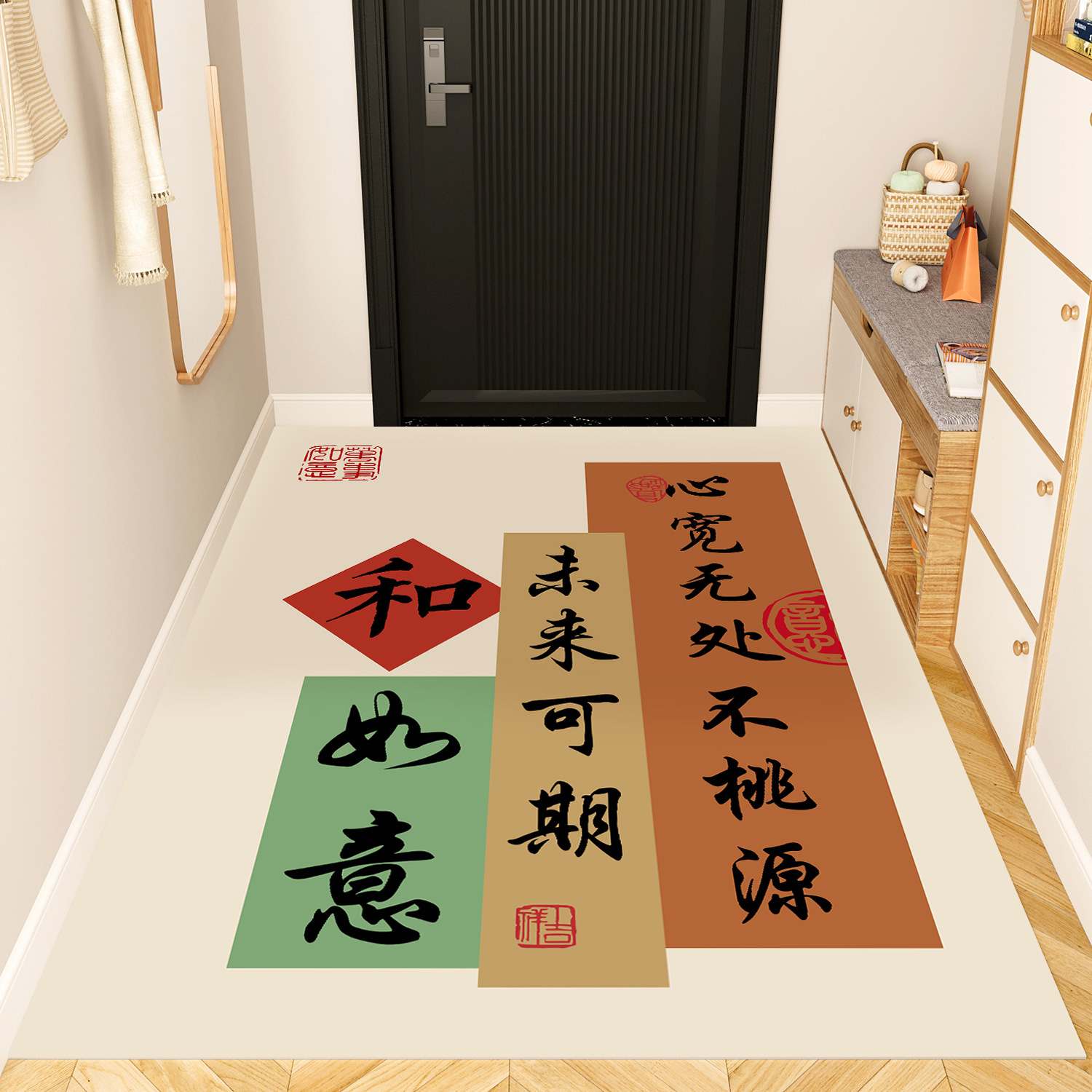新しい中国風の入り口のマット玄関の靴交換エリアの滑り止めマットは、家庭用の革のマットを拭くことができます。