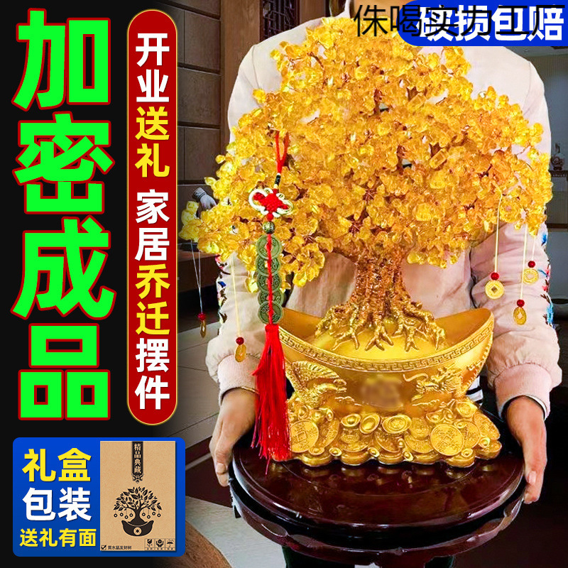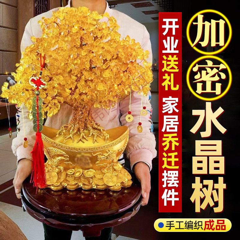 イエロークリスタルラッキーツリー、金のなる木、オープニングギフト、大きな装飾品、ホームリビングルーム、ショップ、新築祝いギフト、テレビキャビネット