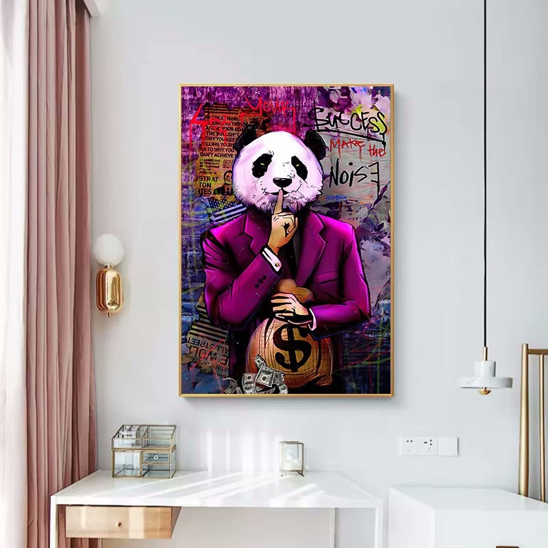 クロスボーダー落書き赤青緑パンダ顔製造騒音キャンバス絵画銭袋客間家庭装飾画