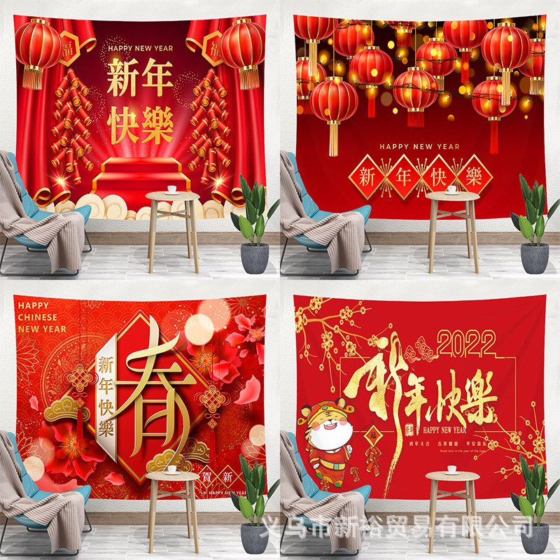 2022新年元旦新年旧正月お祝い壁布タペストリーデパートの部屋のベッドの雰囲気装飾背景布