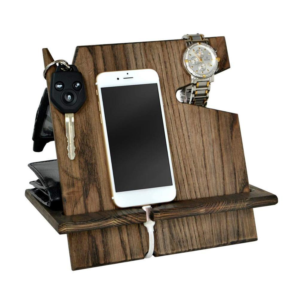 木制携帯电话ホルダーレトロ木制腕时计メガネキーアクセサリーハンガーデスクトップ财布収纳木ラック