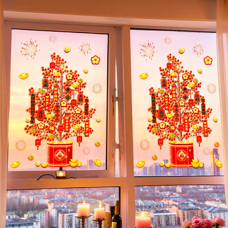 新年旧正月装飾品デパートショーウインドーガラス静電貼り両面リビングバルコニー押し引きドアシール衝突防止