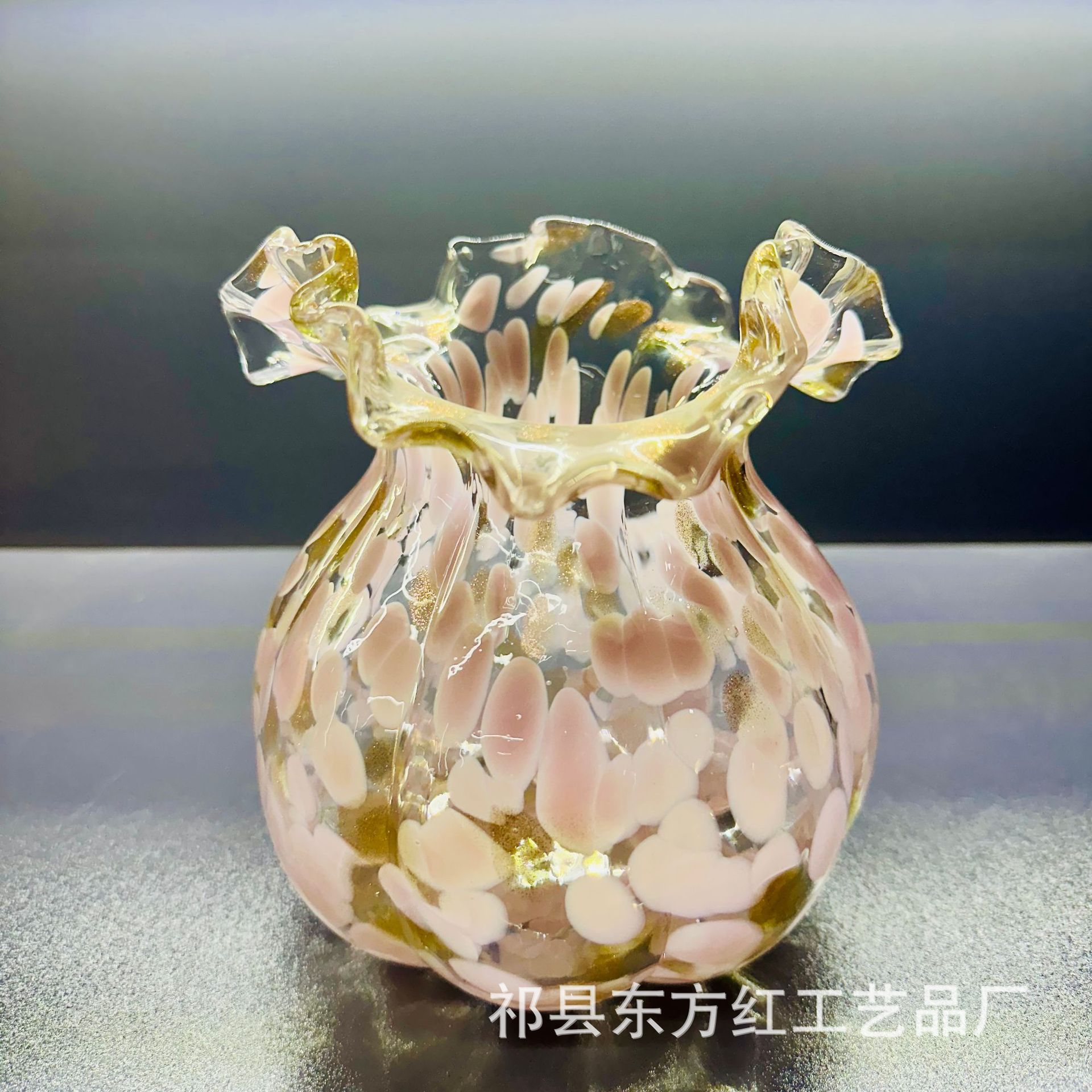 ピンクのマネーバッグ花瓶装飾品、重いリビングルームフラワーアレンジメント、ガラスフラワーベース、ハイエンドの手作りレトロウォーターライティングライトラグジュアリー