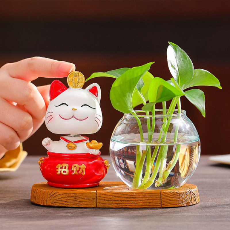 かわいい招き猫の装飾品、ホームリビングルームの装飾、オフィスのデスクトップの装飾、クリエイティブなガラスの花瓶、小さな水槽