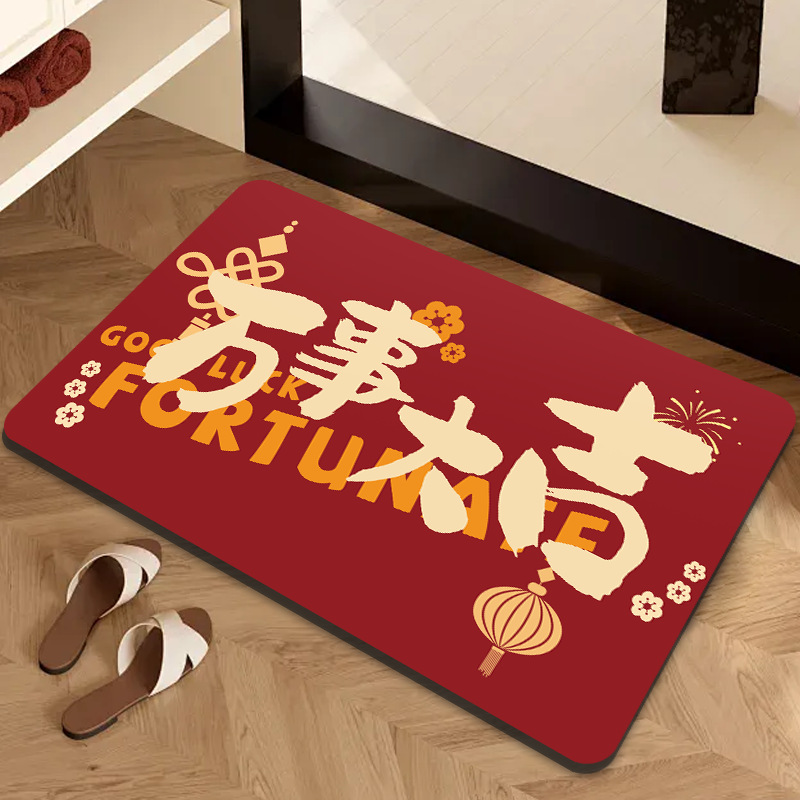 新しい赤いお祝い珪藻泥床マットトイレ浴室滑り止めマット家庭用玄関管理しやすいマット