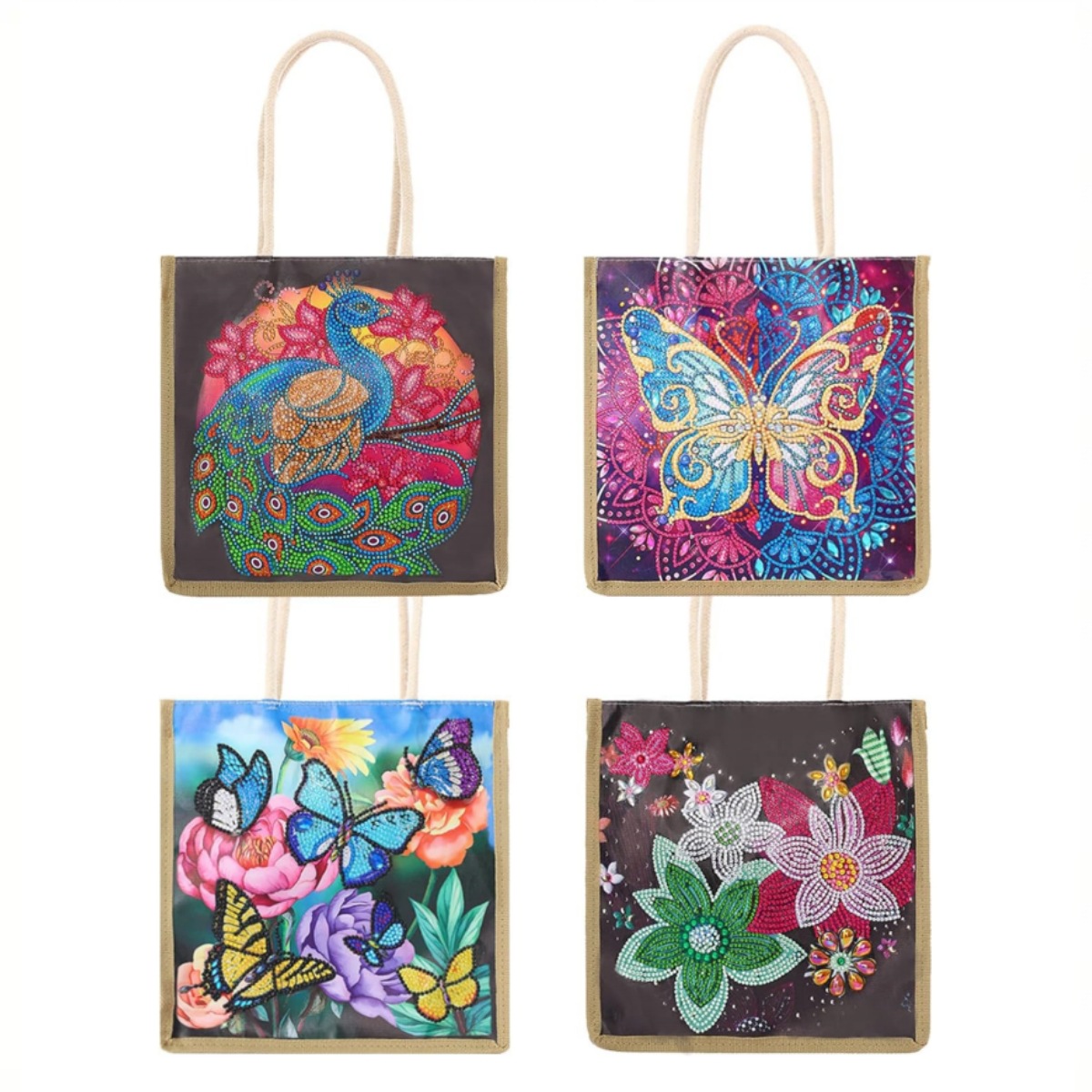 5Dダイヤモンド絵画ショッピング手提げ袋セット手作りアート再利用可能なハンドバッグ工芸バッグダイヤモンド付き
