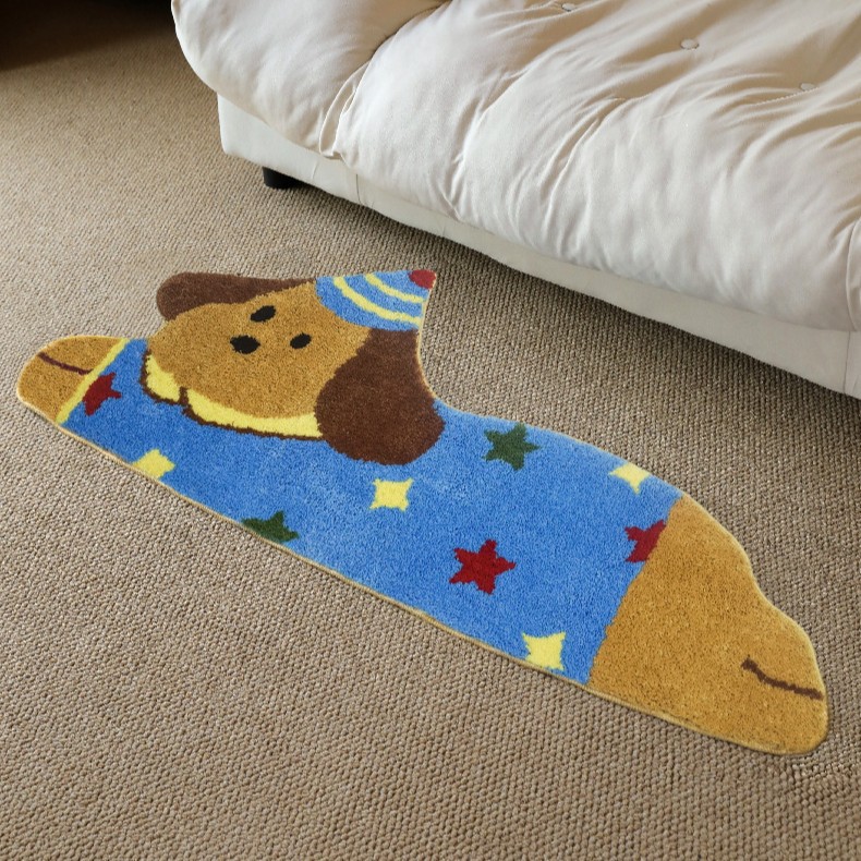 青い漫画の子犬の植毛の絨毯の子供の部屋のベッドのサイドのじゅうたんのぬいぐるみのマットの吸水の滑り止めの足のマット