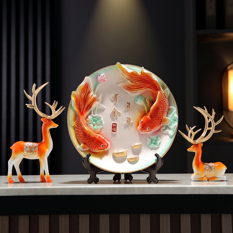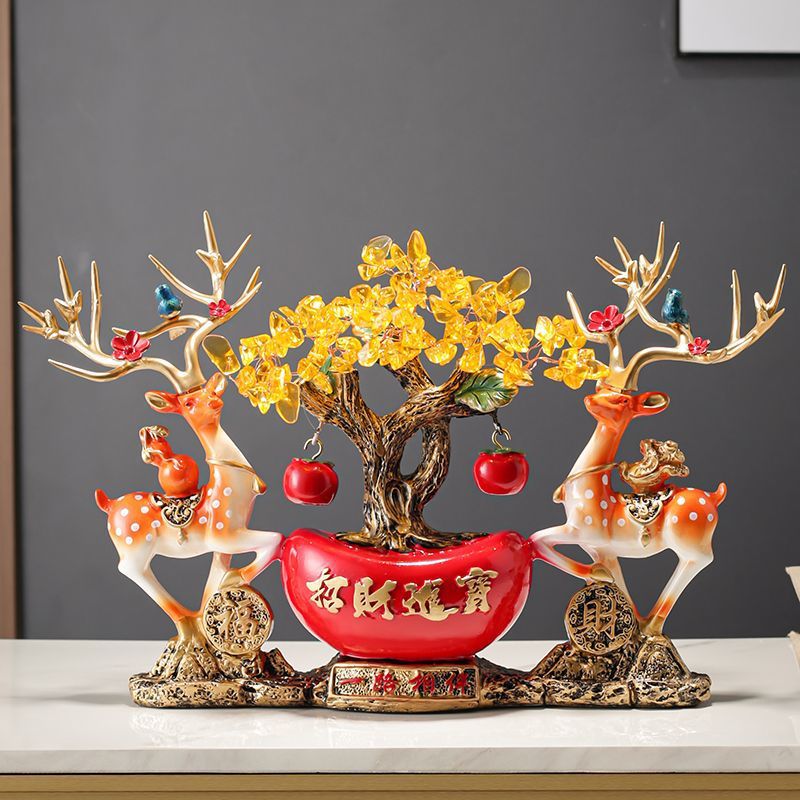 新中国式招財鹿銭袋発財樹置物リビングルーム