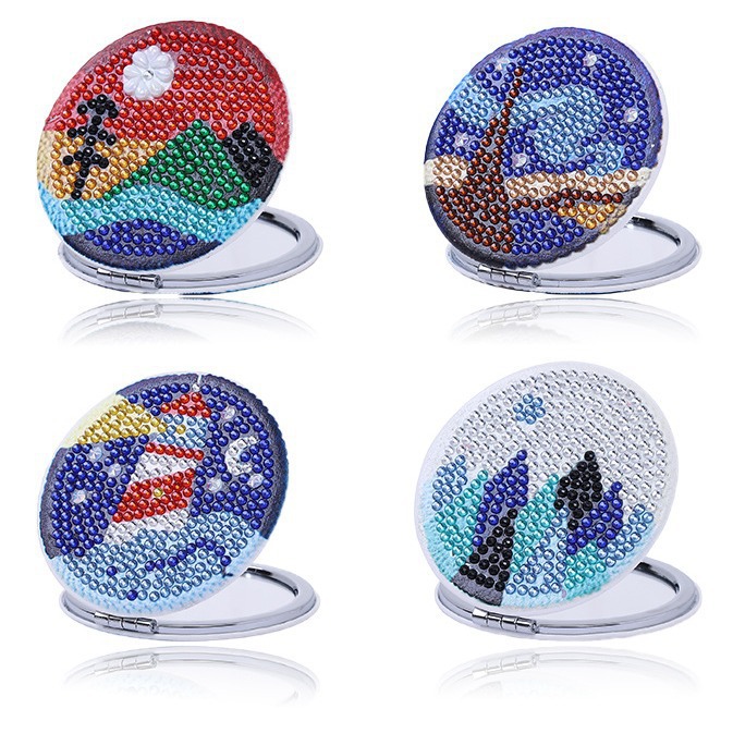 財布や旅行に適した小さな鏡付きの1pcsダイヤモンド絵画キット小鳥スタイル